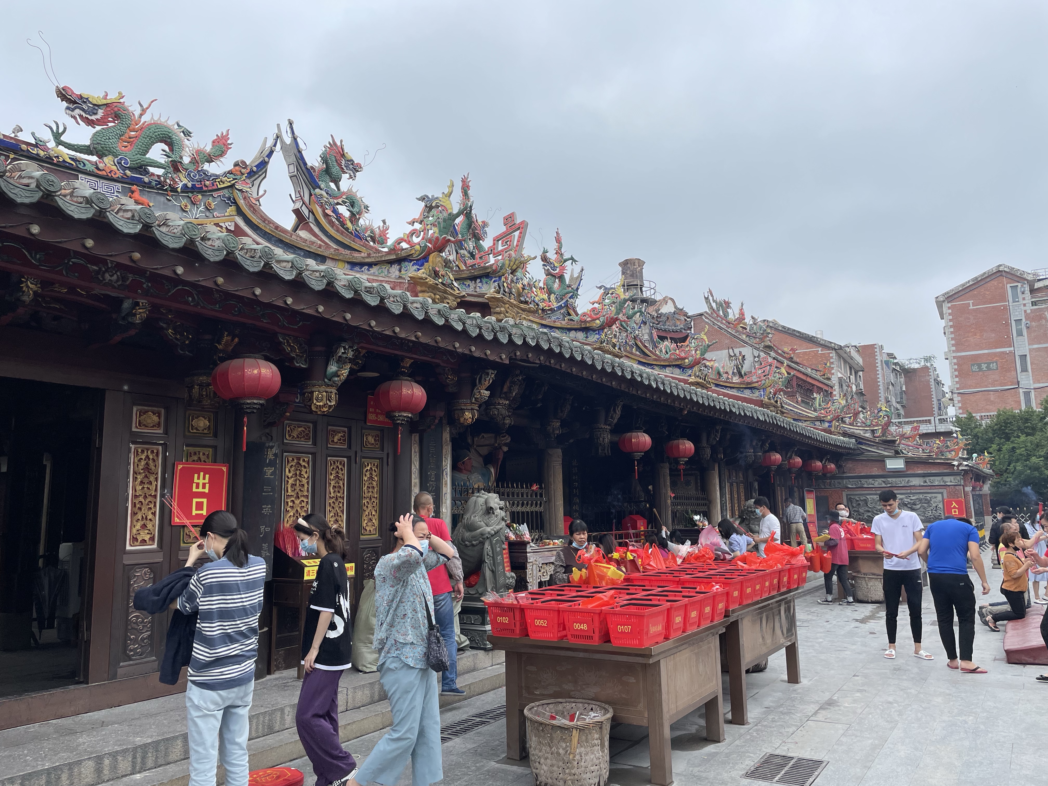 而泉州的天后宫,我赶到的时候刚好下班没能进到里面去,可光从外面就可以感受到,占地很大,庙门前坪是泉州的南门德济门的遗址,往城门外走个几十米,便是晋江。当年的水手们扬帆起航前的最后一站,大概是在南门的天后宫拜拜妈祖,祈求不会遇到风浪,能有个好收获。人类就是这样,越是恶劣的自然环境,人类越会借助信仰的力量。妈祖是闽南和台湾沿海的民间信仰,至今对民间有着巨大影响力——前两年台湾台中的大甲镇澜宫,在新冠疫情下办不办妈祖绕境一时成了全台上下争论的焦点,经过行政院和镇澜宫于信众的多次交涉,才"请示妈祖掷筊后"决定取消。