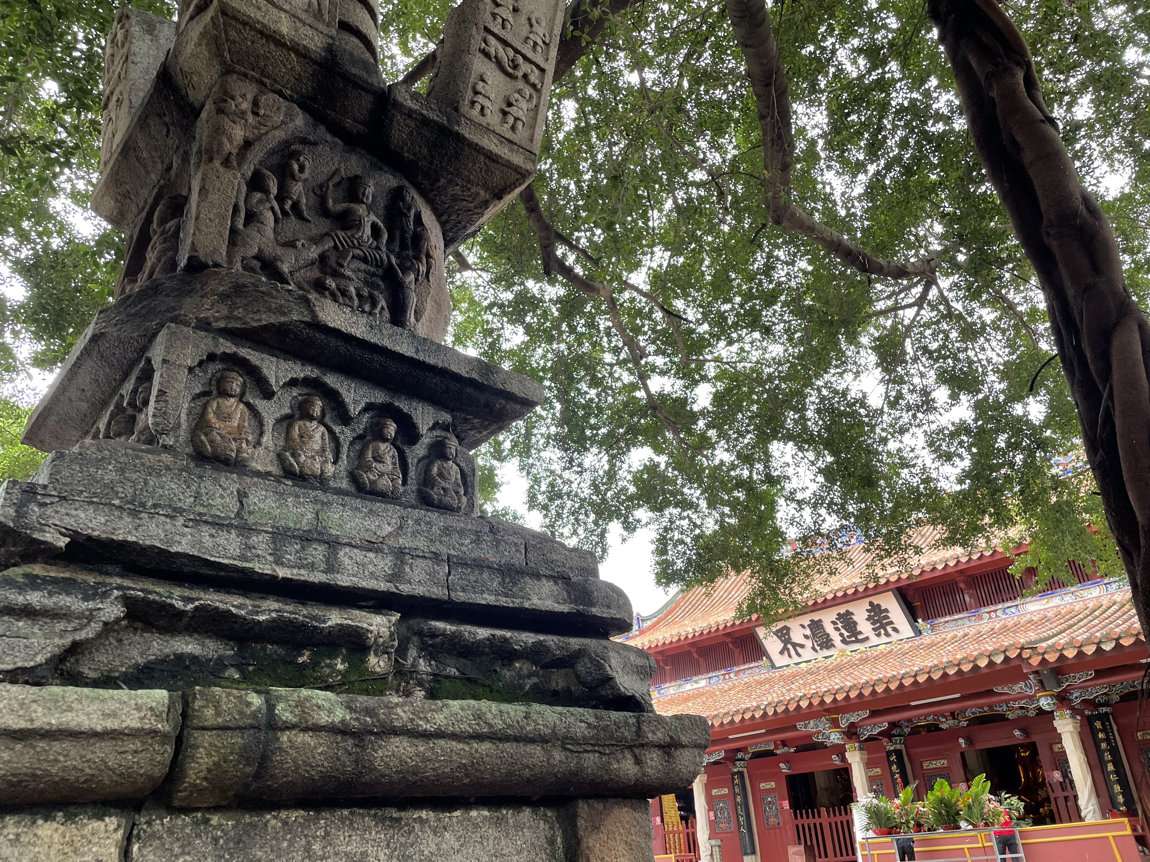 当然,中国的本土宗教,佛教的开元寺和闽南妈祖的天后宫在泉州也都是无可撼动的存在。这两座南宋庙宇占地都很大。离开元寺老远就能看到它的东西两座宋代石塔,走进山门更是能感受到开元寺的气派——我已经很久很久没看到一间寺庙的大雄殿前广场有这么宽阔,还点缀着一些石刻碑记和供养人捐赠的石塔。可以想象在宋元时代的人们,跟随着五层楼高的石塔来到开元寺朝圣拜拜的场景。